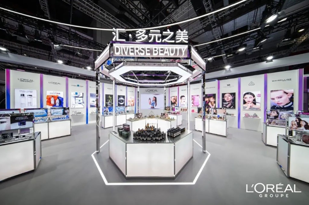 歐萊雅企業(yè)展臺(tái)設(shè)計(jì)運(yùn)用全息影像等技術(shù),打造獨(dú)具一格的“美視魔方”,塑造成為匯聚新品、創(chuàng)新和合作的“美麗新勢(shì)能磁場(chǎng)”。