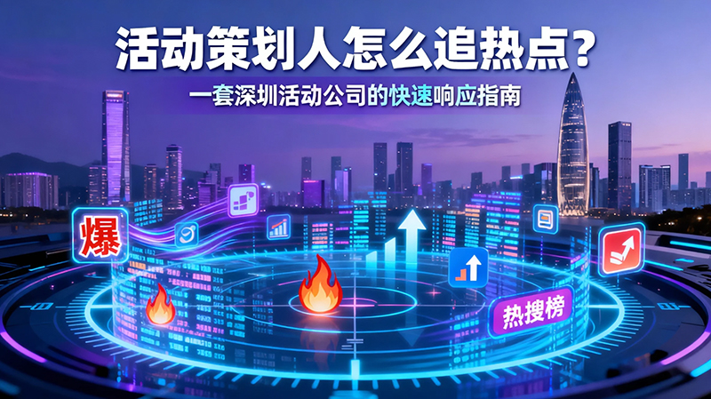 在活動策劃行業(yè)深耕多年的專業(yè)人士都深知,這份工作不僅需要嚴謹?shù)姆桨缸珜懩芰Γ笪覀冸S時保持對市場熱點的敏銳嗅覺。作為深圳活動策劃領域的專業(yè)活動公司,我們明白“追熱點”早已成為現(xiàn)代活動策劃人必備的核心技能之一。當甲方提出蹭熱點的需求時,能夠迅速響應并提供創(chuàng)意方案,是我們在這個競爭激烈的市場中脫穎而出的關鍵。